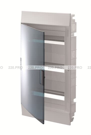 Бокс в нишу 36 мод. (3 ряда), белый, зеленая прозрачная дверь, с клеммами ABB Mistral IP41