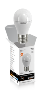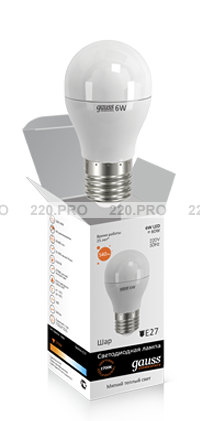 Лампа светодиодная шар (теплая), Е-27 6W 2700K, Gauss Elementary (53216)