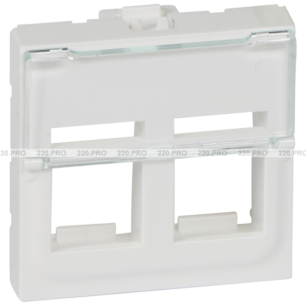 Лицевая панель для интернет розеток 2хRJ45 формата Keystone, 2 модуля — белый, Legrand Mosaic