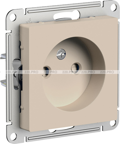 Розетка без заземления, со шторками, 16А — песочный, Schneider Atlas Design