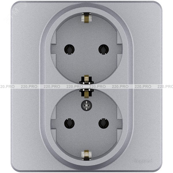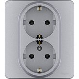 Розетка двойная с заземлением, 16 А, 250 В - алюминий INSPIRIA 673752