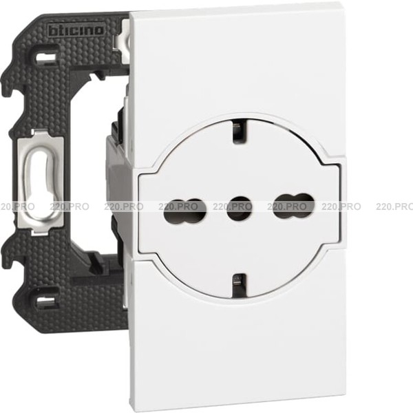 Розетка электрическая плоская - немецкий/итальянский стандарт 10/16А винтовые клеммы 2 модуля — белый, Bticino Living Now