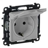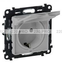 Розетка электрическая с заземлением с крышкой, автоматические клеммы, алюминий, Legrand Valena Life (753021/754842)
