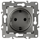 Розетка с заземлением Schuko, без монтажных лапок - графит, ЭРА 12