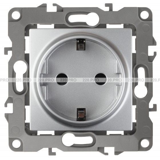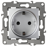 Розетка с заземлением Schuko, шторками - алюминий, ЭРА 12