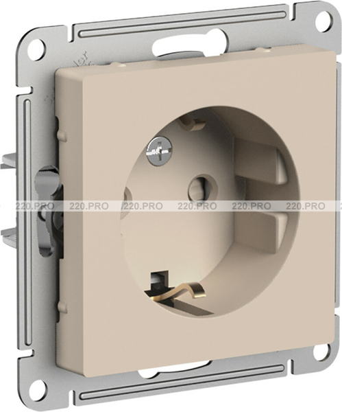 Розетка с заземлением, шторками, 16А — песочный, Schneider Atlas Design