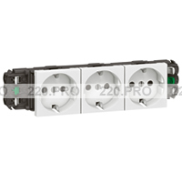 Розетка тройная с зеземлением, шторками, 6 модулей, DLP, немецкий стандарт, автоматич.подключение — белый, Legrand Mosaic