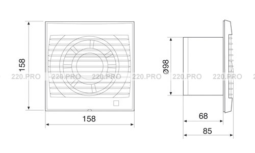 Осевые вентиляторы с компактным тонким корпусом Slimline, низким уровнем шума, снабжённые жалюзи обратного тока и индикатором включенного питания. Двигатель 230 В, 50 Гц, IP44, класс II и тепловая защита. Работа при температурах вплоть до 40°C.