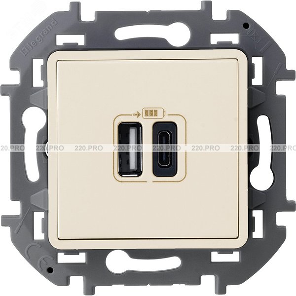Зарядное устройство с двумя USB-разьемами A-C 240В/5В 3000мА - слоновая кость INSPIRIA 673761